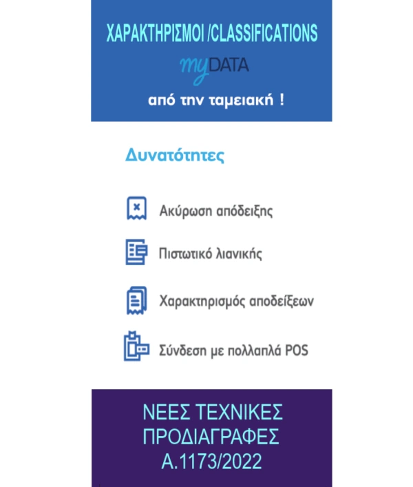 | Θύρες | LAN, USB, RS232, Drawer, Barcode, Ζυγός |