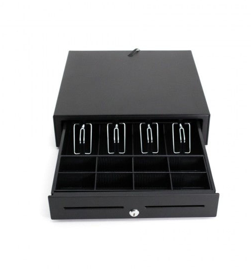 Μεταλλικό συρτάρι εισαγωγής με 4 θέσεις χαρτονομισμάτων και 8 θέσεις κερμάτων. Συνδέεται με εκτυπωτή κουζίνας. Διαθέτει κλειδαριά 3 θέσεων (Ανοίγει – Κλειδώνει). Διαστάσεις: (Π) 405 x (Μ) 415 x (Υ) 100 mm